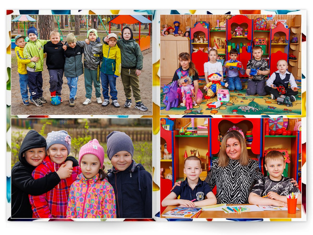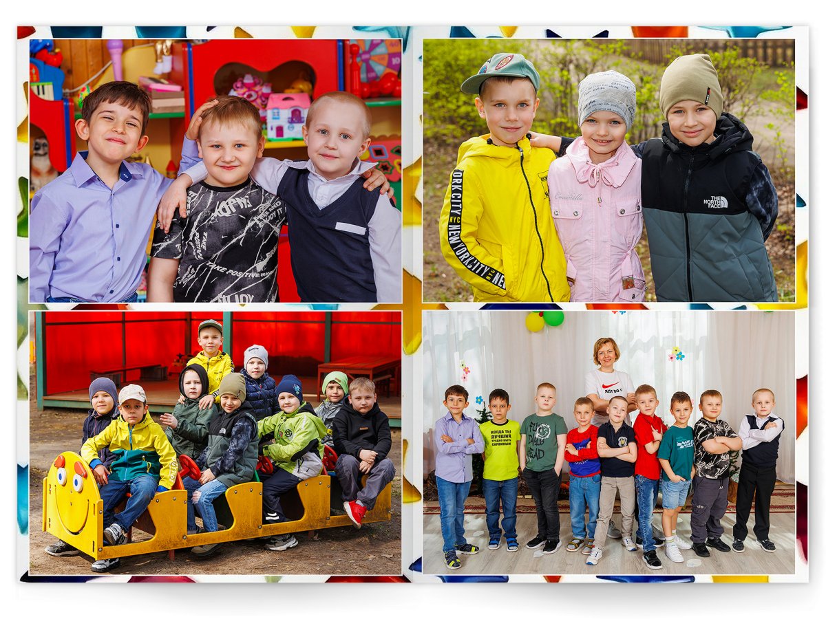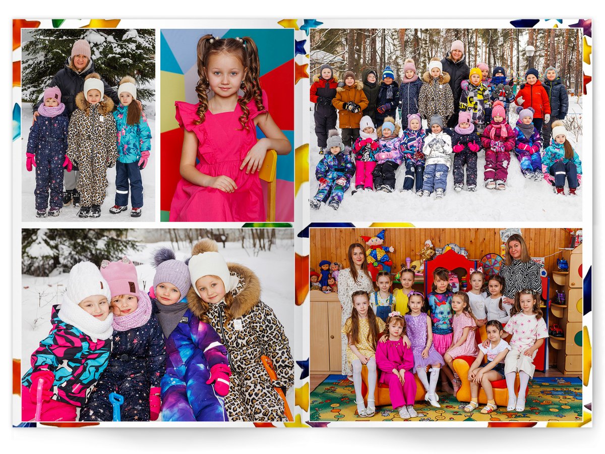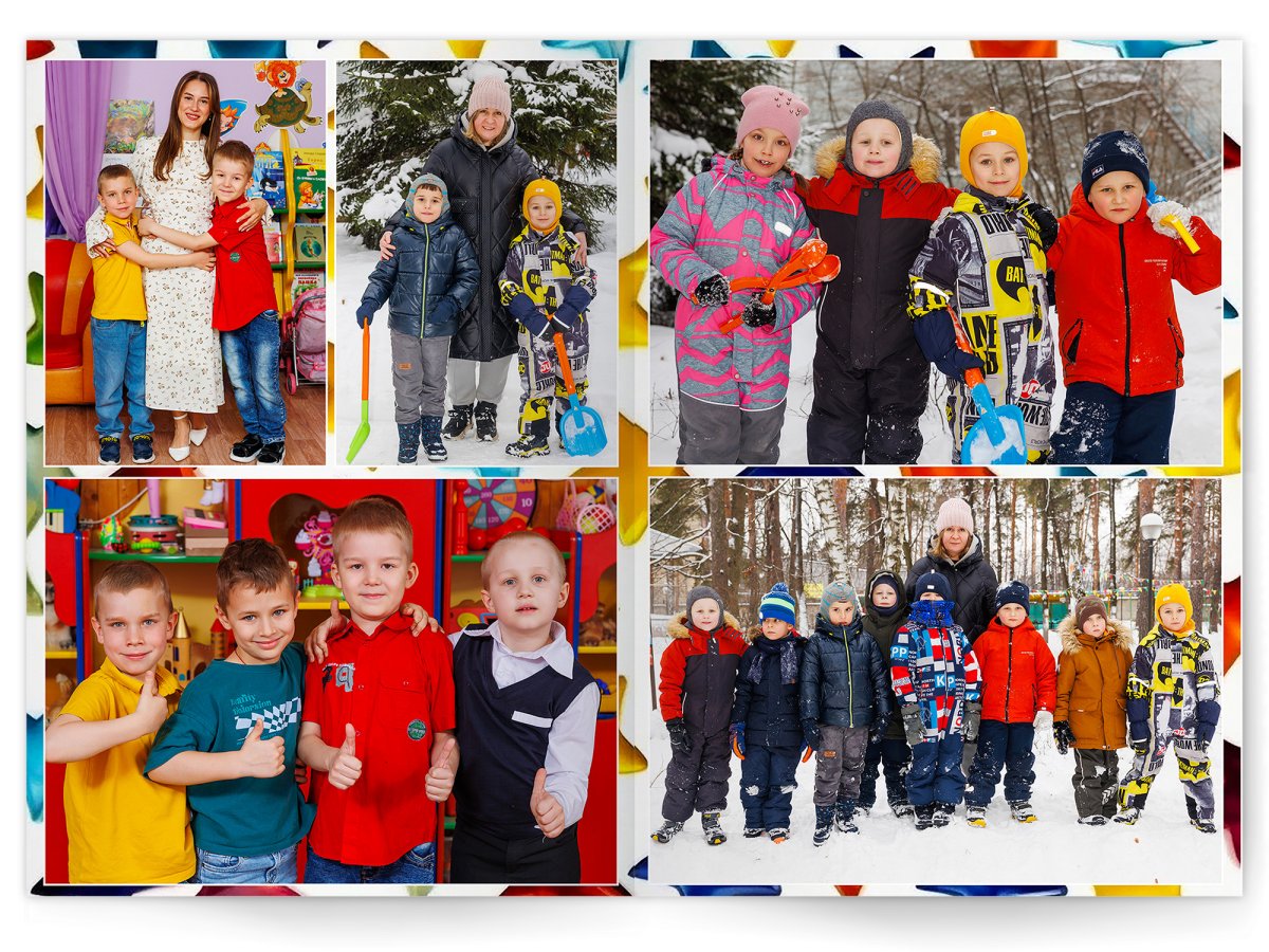 • Портреты всех детей и воспитателей на развороте